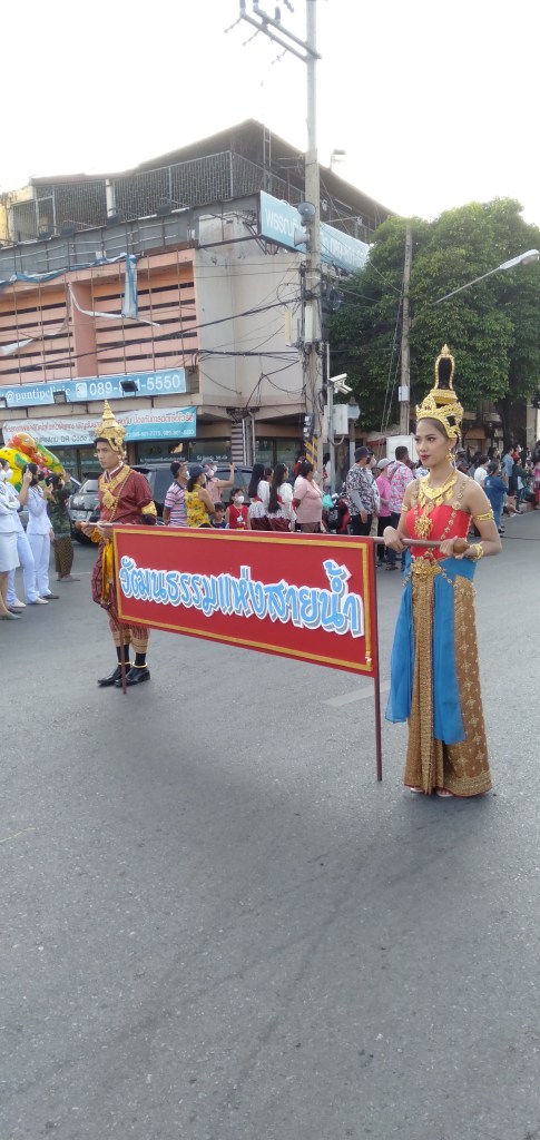 Loy Krathong festival was a festival to commemorate about gratitude for water. Because water has a lot of benefits for human. To show the gratitude, they floated the “Loy Krathong” on the water. So after we made the Loy Krathong, we went to the Sakew (like a river) and while we were walking to the Sakew there were a parade, an elephant parade too. It’s little bit crowded but we could reach the Sakew not really hard. After we arrived in Sakew, we floated our handmade Loy Krathong on the water.