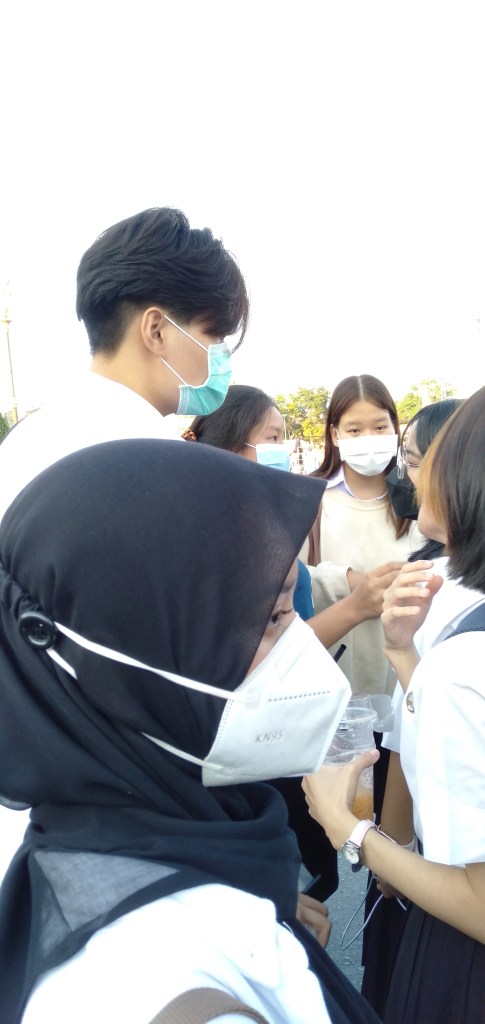 So today, i went to Sathit Thepsatri School. Before this i believed that Sathit was included in its name as a School in Lop Buri. But actually its meaning was “School” for grade 7 till 12. This school was huge, and it has 6 floors with 3 buildings. It has a wide basketball field. And it is located near the Thepsatri Rajabhat University. Our first day and our first impression was very great and amazing.