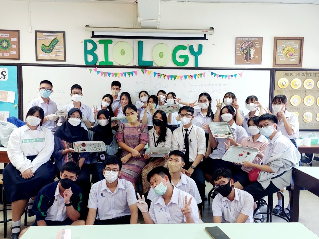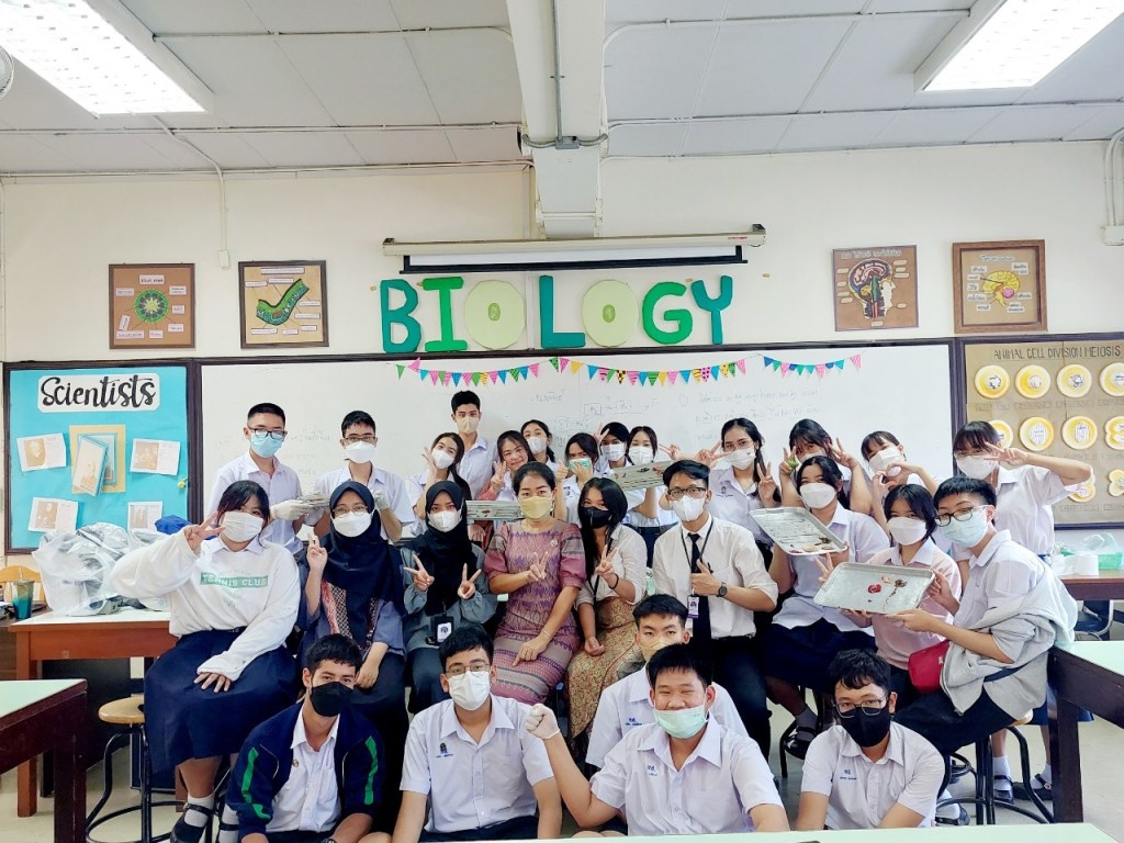 Today i observed Ajarn Panin’s Class. But all of my friend that had no class at that time needed to follow Biology Practicum Class. But i had Ajarn Panin’s class so i didn’t follow them. In Biology Practicum Class, they needed to do surgery to the fish. They looked the organs of the fish. My friends were really enjoy that time because they collaborated with students to do the practicum. Meanwhile i would observe the Matthayom 6/3 till lunch. My first impression for this class was maybe so so with class in Indonesia. They have a little for attention. They couldn’t pay attention for a long time, they easy to get bored. And i had one person in class that maybe he understand about english. So i talked to him during the class, and i tried to help him if he needed help for something that he didn’t understand.