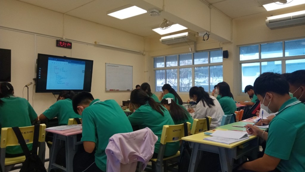 Today was the same day as before. The van picked us up at 6.40 am. After we arrived at Sathit, we dropped our bags and stuffs in our room and followed the ceremony that be held every morning. And after that, i followed Ajarn Panin’s Class in 6/3. In Sathit School, my final teaching was in Matthayom 6 (it means 6/1 6/2 and 6/3) but i only observed the 6/3 class. And that was a failure for me because i didn’t get the bonding with the students from the other class. So today i just followd one class at 8.30 to 10.10 am in 6/3. And after that i got a free time so i did another excercise or maybe prepare my lesson plan to do my final teaching.