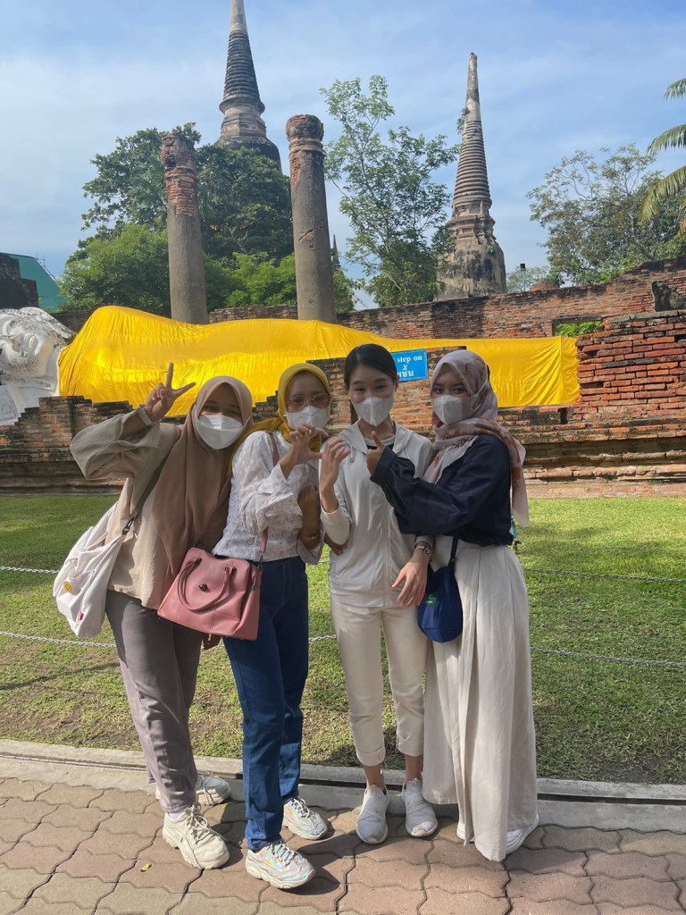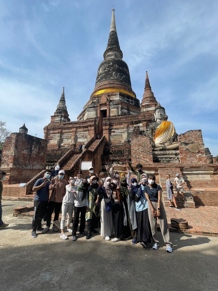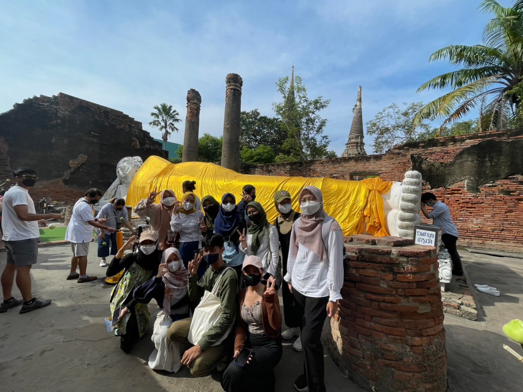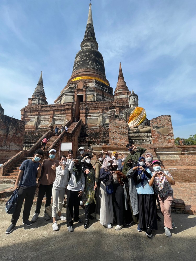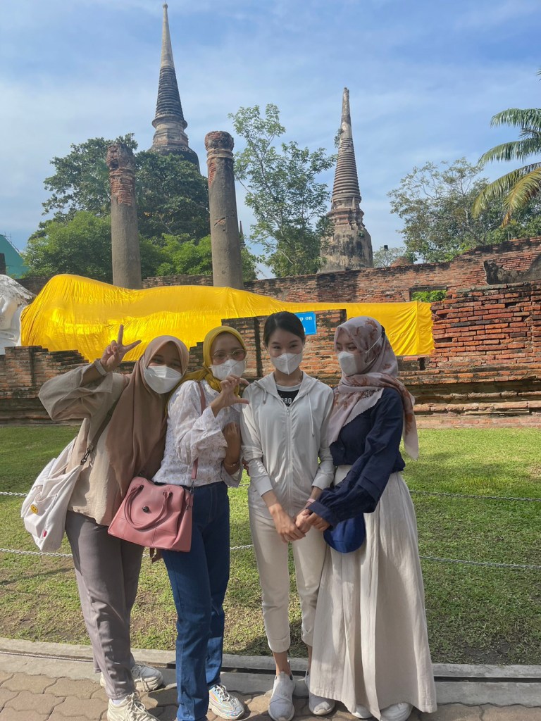 Today, we got another trip again. Last week we went to the National Science Museum and Dream World in Bangkok. But today, we went to Ayutthaya. Initially, the van will picked us up at 7.30 a.m from the dormitory. Of course this was so exciting. In the morning, Atom and me started to prepare ourselves. I tried to pick a khaki shirt with grey trousers and a beige hijab. I did some make up on my face and voila, i was ready to go.