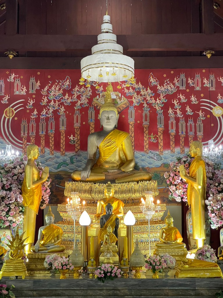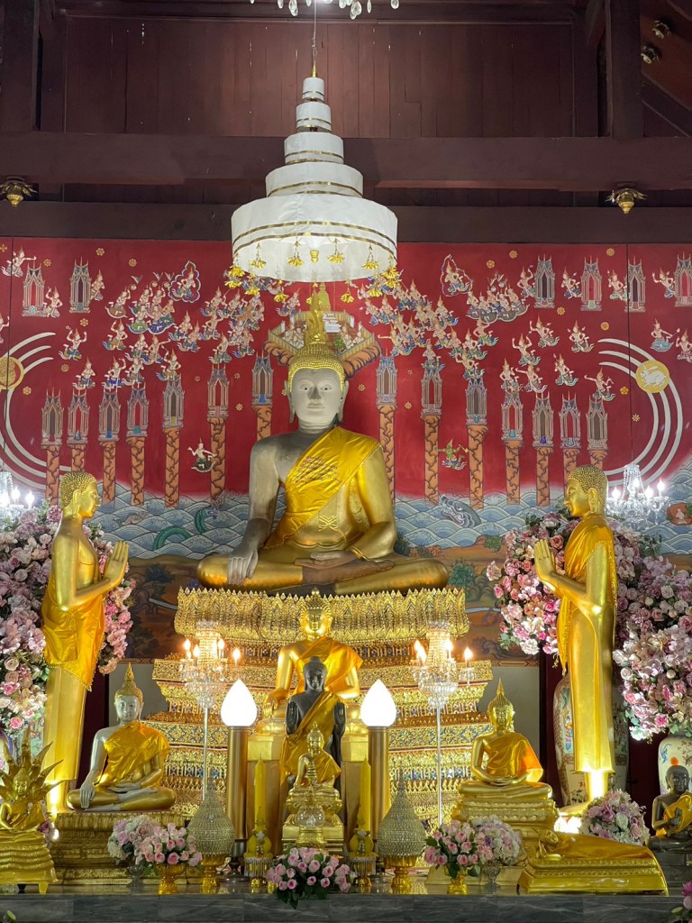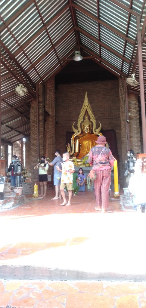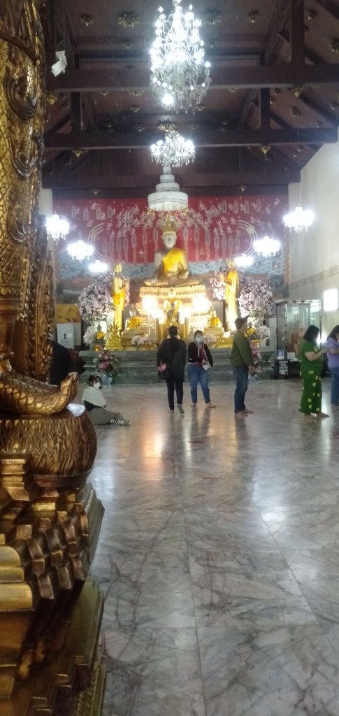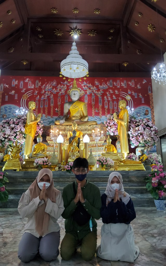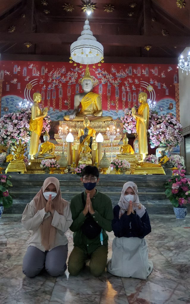 Here, we got a footpath to the another destination, so after we felt satisfied we continue our trip to the next destination. After a long walk, we arrived at a vihara. It was so big, with a huge of buddha statue inside of it. It was very clean, tidy, and so amazing. Sometimes, people would pray here because it was like a mosque for moslems. Or maybe we could call it as an Istiqlal mosque for buddhist in Thai. It was little bit crowded, before we entered the room we needed to take off our shoes first to respect the buddhist. Inside of it, it was very amazing, so glamour and so bright. There was a lot of flowers and a lot of people took a knee to pray solemnly.