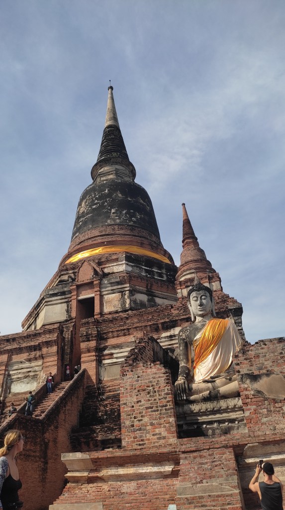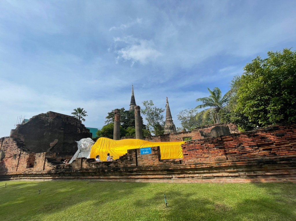 This time, we’re going to different destination in one day. First destination, we would go to the Giant Sleep Buddha(?) i don’t even know how to spell it in Thai. Here, i saw a great big buddha was laying on something and it was covered by a golden fabric. It was so fabulous! Along the way, i saw a lot of tourists and they also stop for a minute to take some pictures of the great buddha. So do i. Me and my friends, try to take some pictures around it.