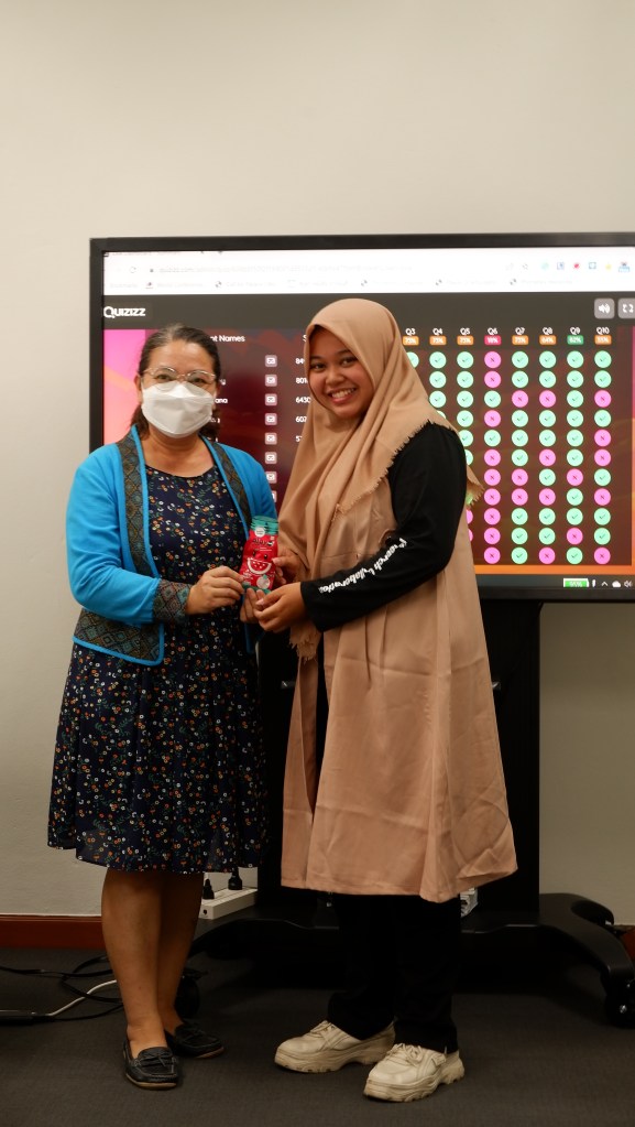 After break lunch, we had our third Thai language class. It was Ajarn Dao’ class. In this third class, Ajarn Dao taught us about food and baverages, how to say i want to go somewhere, and public places. And after all of the class, Ajarn Dao gave us a quiz from quizziz. This was so fun! because we needed to compete each other and i came out as the second place! The first place was Yok (Intan Elyana), i got the Second Place and Wasnna (Hena Zahra) as the third place. And at the end of the day we all sang together with Ajarn Dao to sing a Thai song. That was a popular one.