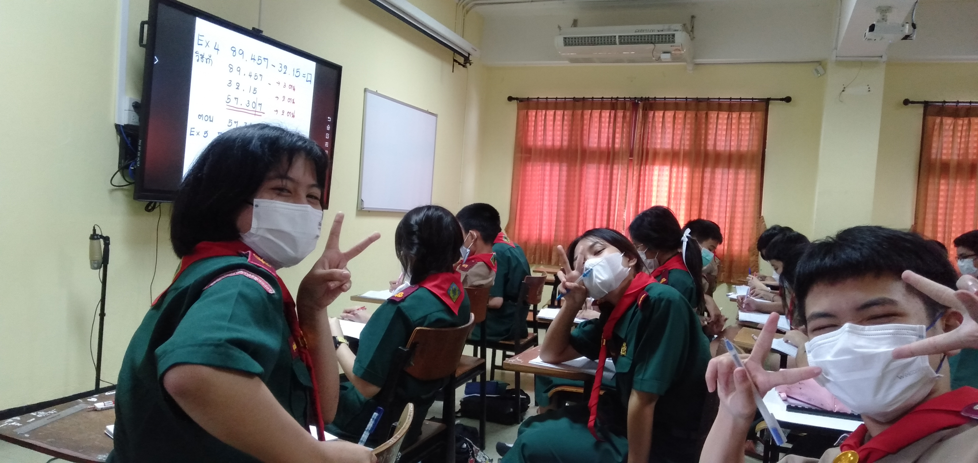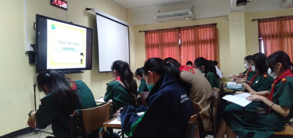 Today, i followed Ajarn May’s class again. Even i was an undergraduate chemistry teacher but here, i joined Ajarn May’s class who taught about physics. Here, Ajarn may would explain about significant number. Actually i got this topic when i was in 10th grade but i didn’t understand so i just can see Ajarn May’s teaching. Although i couldn’t understand, but students still be excited around me. They talked to me alot and tried to pratice their english. I played or took pictures too with them, it looked so cute.